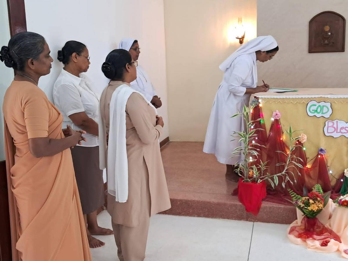 The day began with a heartfelt and warm welcome extended by the Novitiate Community, setting a joyful and reverent tone for the entire celebration. A grace-filled prayer service followed, during which the new Novice Mistress, Sr. Thiruselvarani Alas, was officially installed - a moment of deep spiritual meaning and hope. Afterward, all gathered to extend their good wishes to the newly formed Novitiate Community and to share their sentiments and blessings. Sr. Gresa Soosaidhasan, the outgoing Novice Mistress, offered a moving reflection on her journey and expressed sincere gratitude to all who had accompanied and supported her throughout her time of service. Expressions of appreciation and encouragement were shared by Srs. Jesmin Fernando, Theophane Croos, and Chandani Jayasuriya, who warmly thanked Sr. Gresa and extended a loving welcome to the new Novitiate Community. Srs. Selvarani Alas (Jaffna), Mangalika Fernando (Colombo), and Khalida from Pakistan also offered rich and heartfelt testimonies, adding depth, warmth, and inspiration to the occasion.